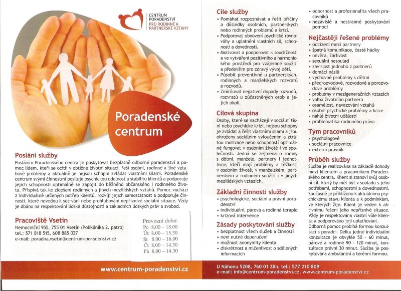 Bezplatná sociální služba Centrum poradenství pro rodinné a partnerské vztahy, p. o.