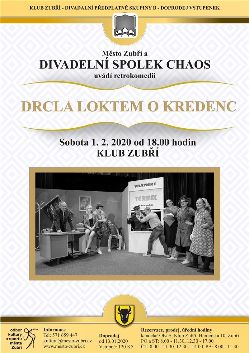 Sobota 1. 2. 2020 od 18.00 hodin v Klubu Zubří DIVADELNÍ SPOLEK CHAOS VALAŠSKÁ BYSTŘICE JO, NENÍ TO JEDNODUCHÉ Představení zařazené do divadelního předplatného skupiny B. Vstupné: 120 Kč, Doprodej vstupenek od 2. 1. 2019 v kanceláři Klubu Zubří