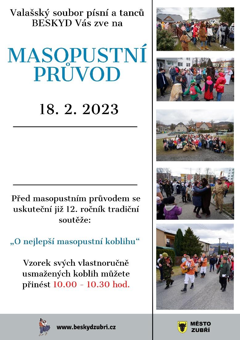 VSPT Beskyd Vás zve na Masopustní průvod v Zubří. Akce začíná v 10:30 u Multifunkčního areálu. Před zahájením průvodu proběhne již 12. ročník soutěže O NEJLEPŠÍ MASOPUSTNÍ KOBLIKH. Vzorek svých vlastnoručně usmažených koblih můžete přinést v 10:30 – 10.45 hodin.