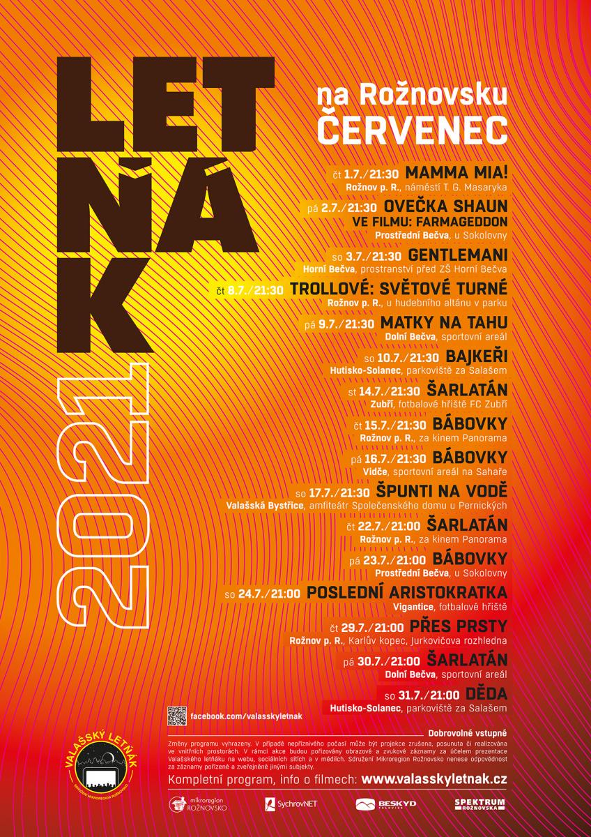 Zveme Vás na první letošní promítání Valašského letňáku v Zubří. Začínáme ve středu 30. 6. 2021 od 21.30 hodin českou klasikou VESNIČKO MÁ STŘEDISKOVÁ. Jako tradičně se sejdeme na hřišti FC Zubří. Československo, 1985, 98 min