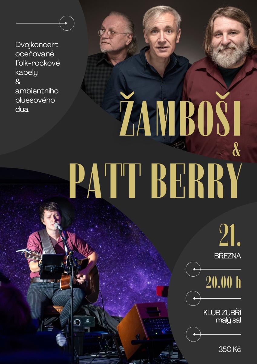Společný koncert kapely Žamboši & Patt Berry v malém sále Klubu Zubří.