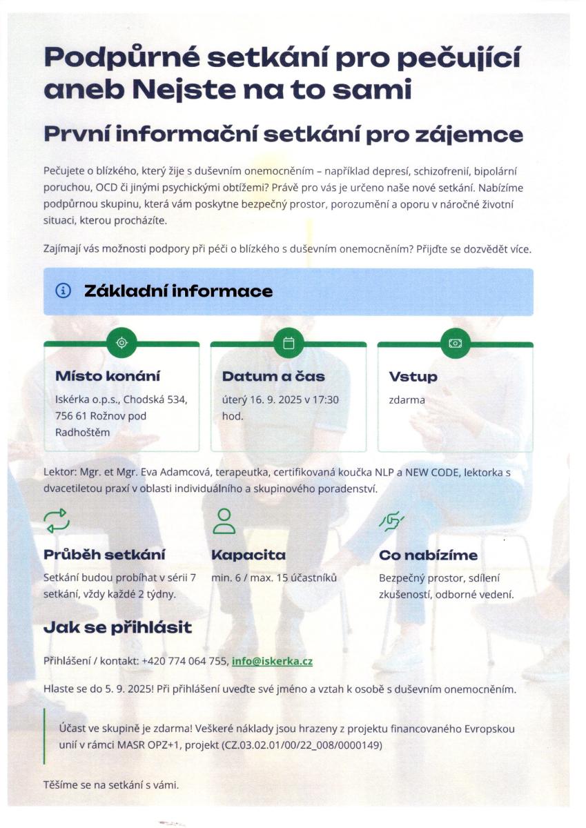 Iskérka o.p.s., - Podpůrné skupiny pro pečující, Týdny pro duševní zdraví pro širokou veřejnost